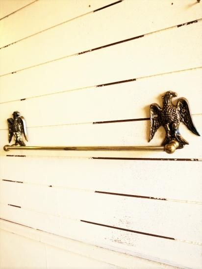 左右のイーグルモチーフとゴールドカラーがとてもいい雰囲気のタオル掛けです。