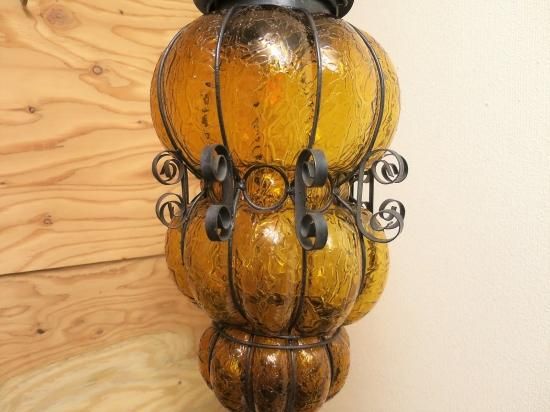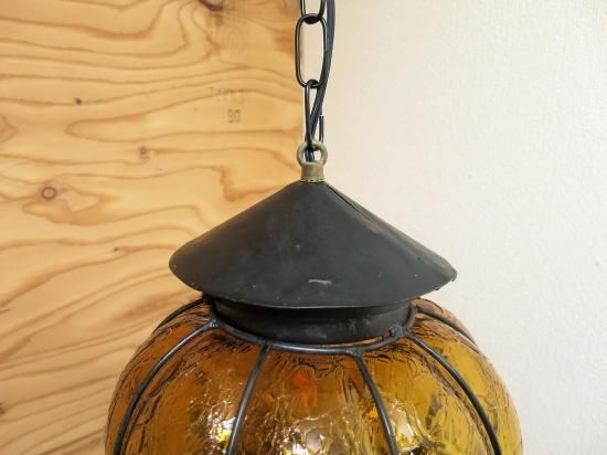 ビンテージ アイアン×アンバークラックガラスペンダントランプ