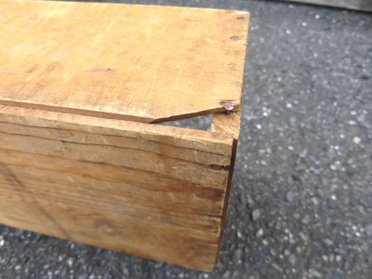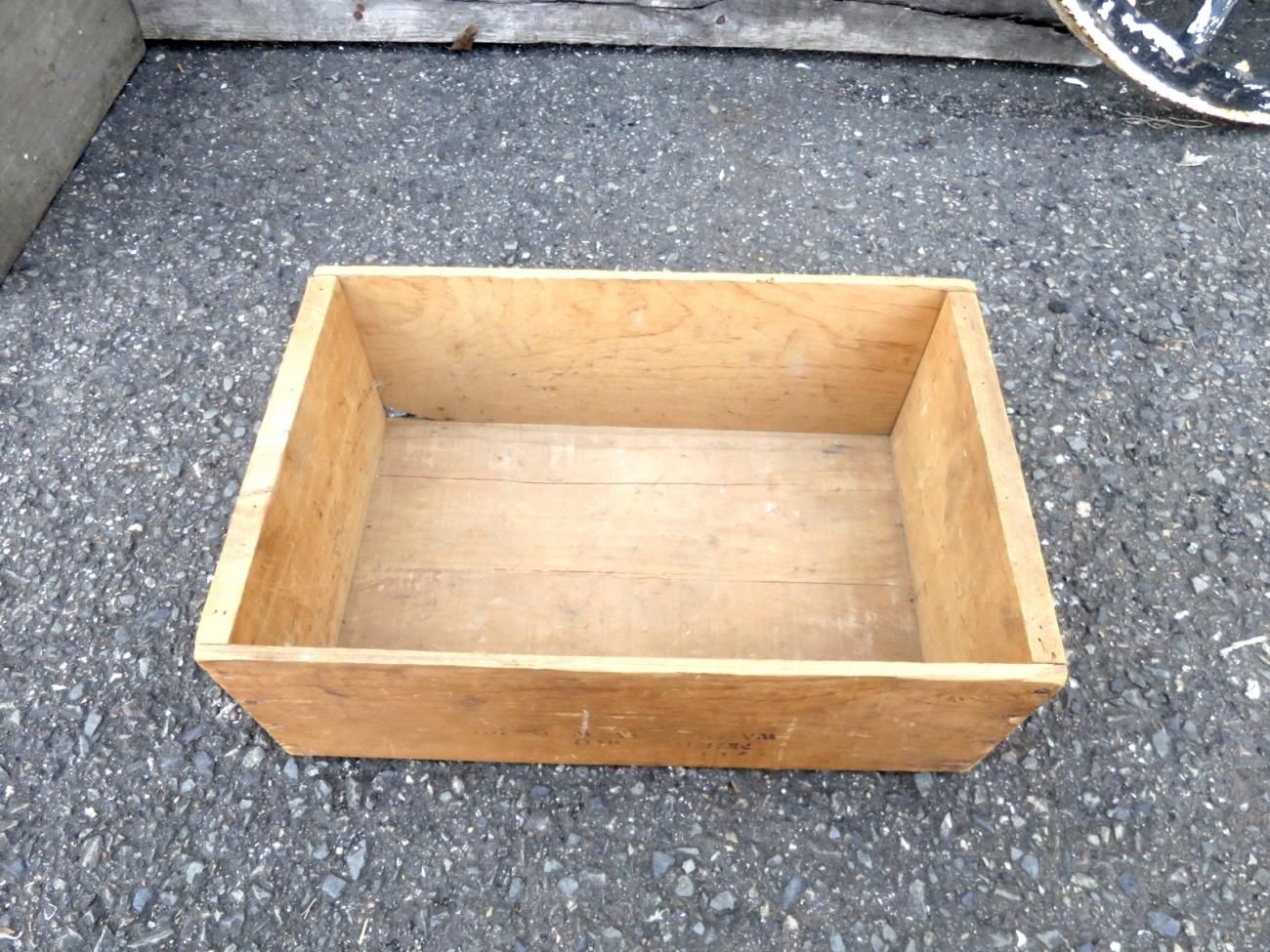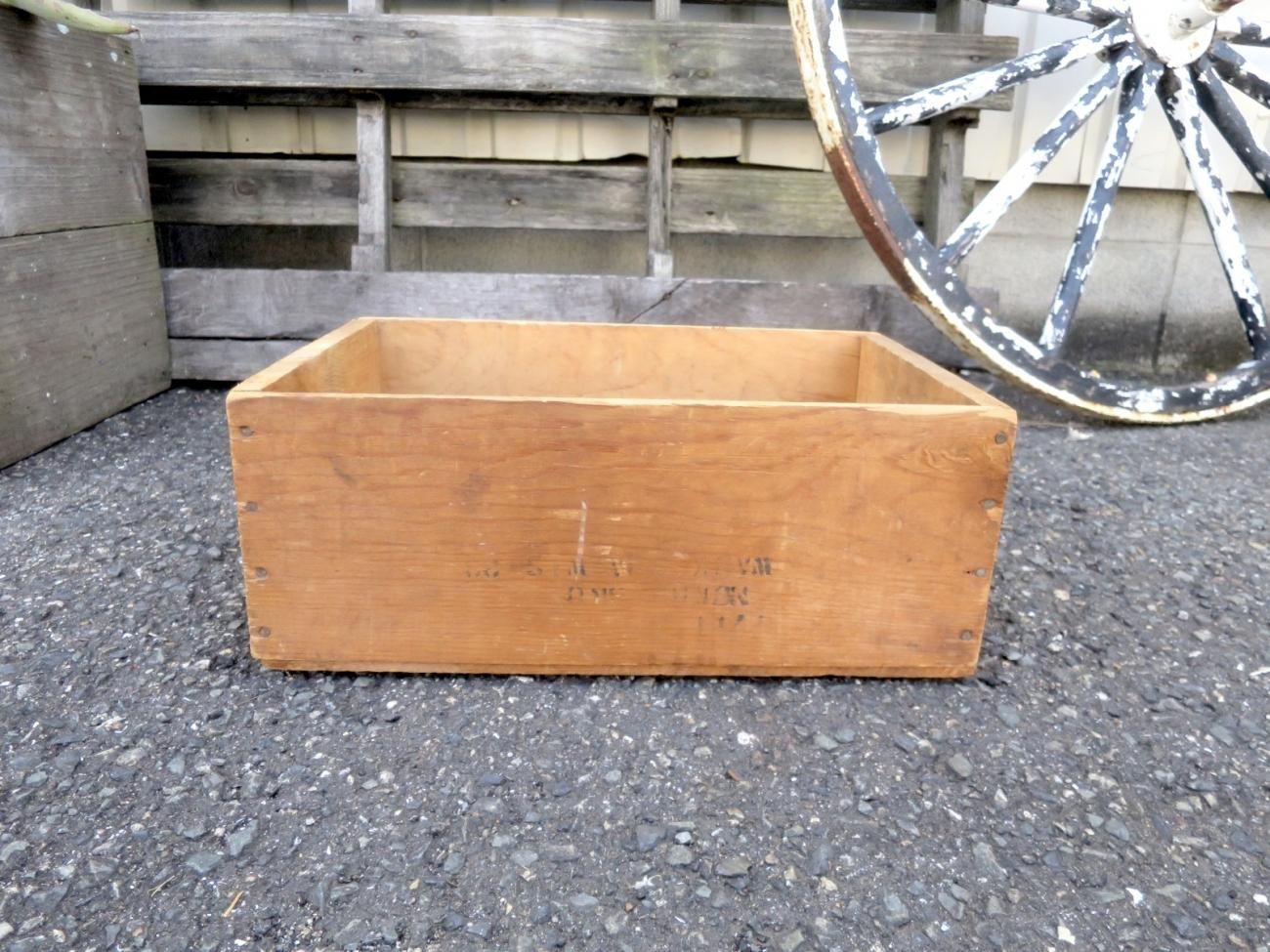 小さめの木箱で使いやすく、サイドの刻印がビンテージらしく雰囲気の良いアイテムです。