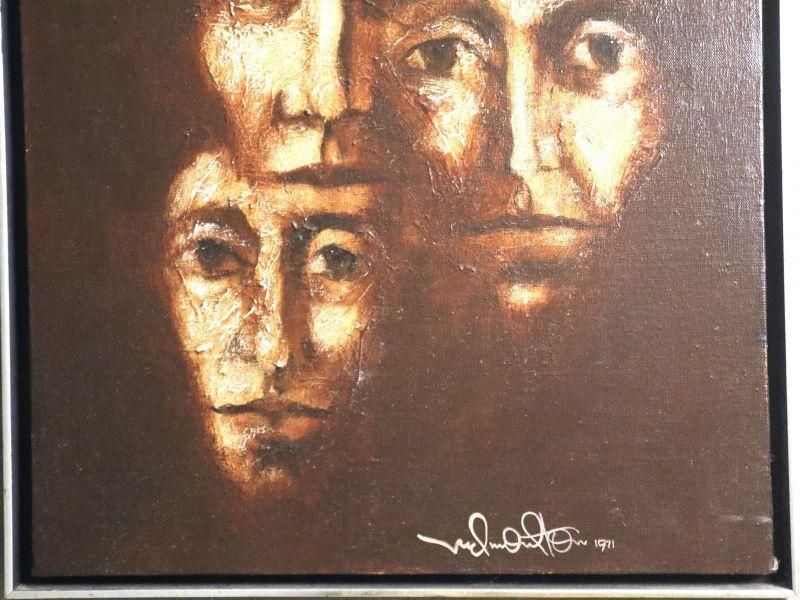 重なり合う複数の顔が雰囲気の良いモダンアートです。