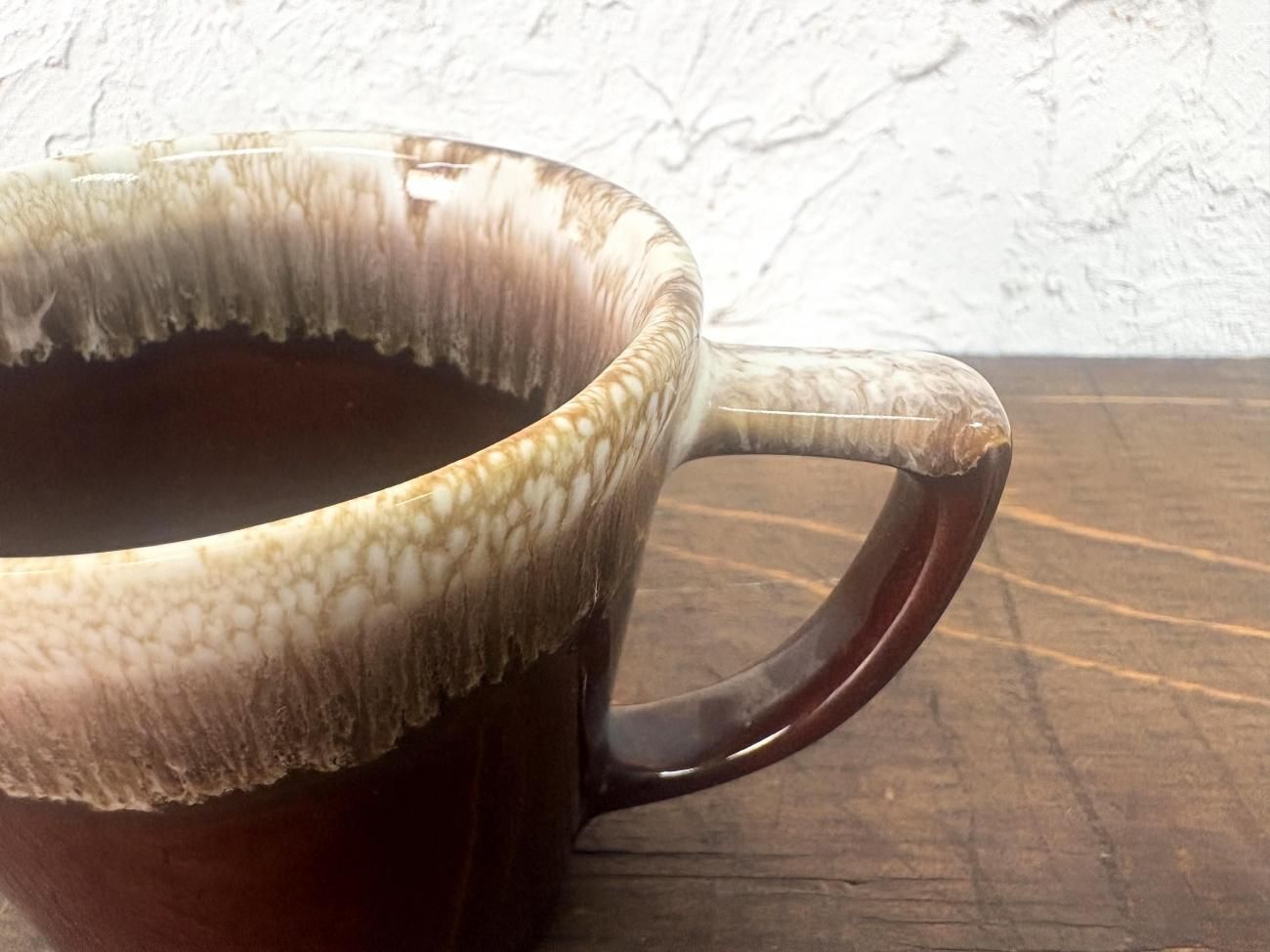 フチに浸した釉薬が流れることによって出来上がる、ブラウンドリップグレーズと