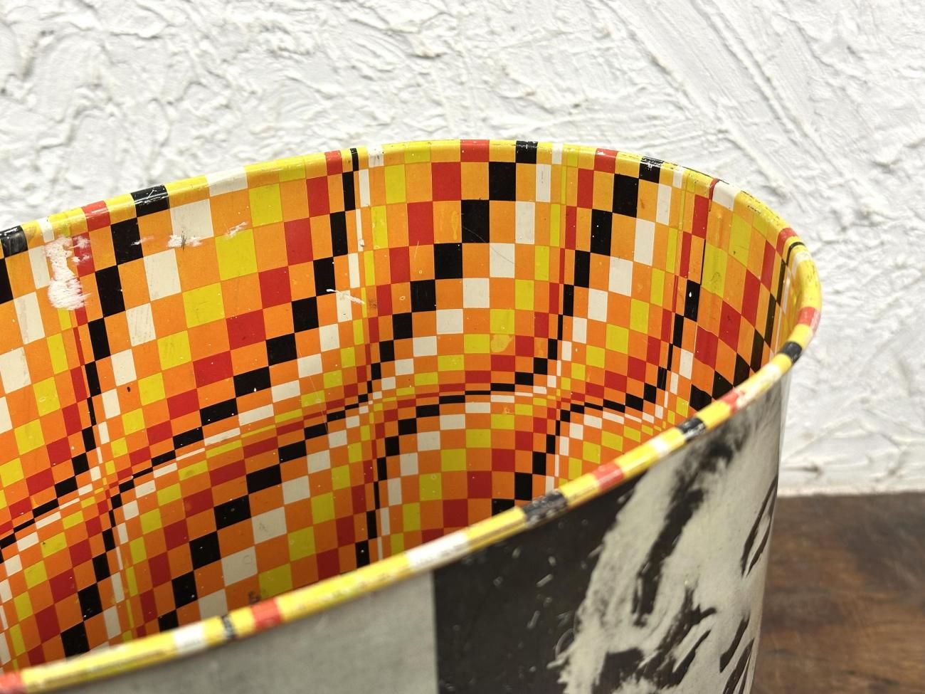 内側は70年代らしいカラーの幾何学模様で、外側には
