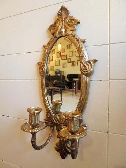 ビンテージ・ブラスキャンドルホルダーミラーです。