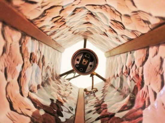 透明電球を入れていただくと、ガラスの模様が光を反射して壁面に映し出され、とても綺麗です。