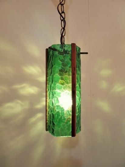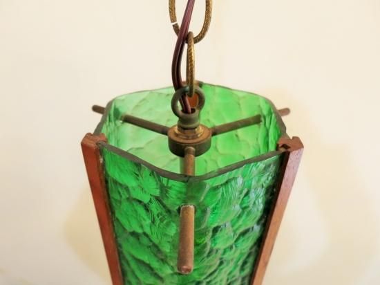 ビンテージ・ウッド×ガラスペンダントランプ(グリーン)です。