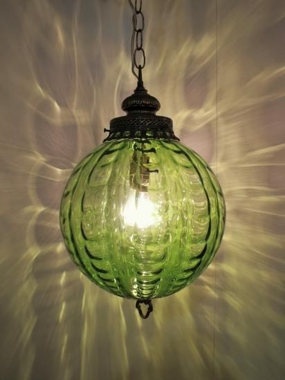 ビンテージ・グリーンガラスランプです。
