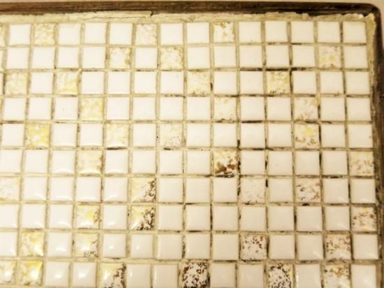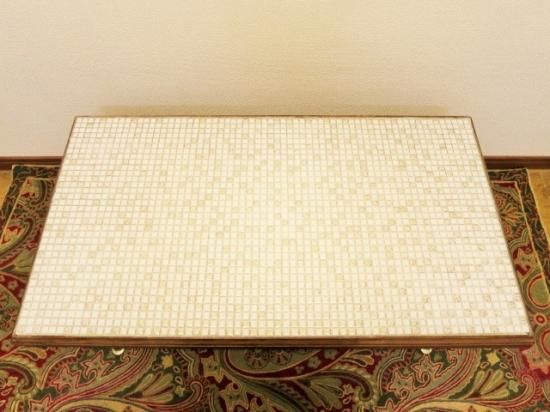 ホワイトを基調としたカラーの所々にゴールドのタイルが混ぜられており、上品な色合いの天板となっております。
