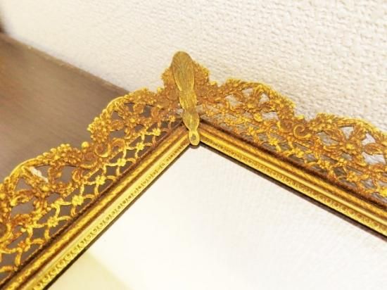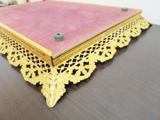 縁の細かい装飾と底のミラーがとても雰囲気よく高級感のあるトレイです。